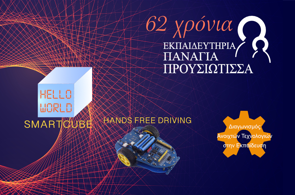 Η δεύτερη ομάδα Πληροφορικής – Ρομποτικής των Εκπαιδευτηρίων μας, αποτελούμενη από παιδιά του Γυμνασίου, περιέγραψε το έργο «Hands Free Driving», το οποίο περιλαμβάνει την κατασκευή και τον προγραμματισμό ενός έξυπνου ρομποτικού οχήματος, το οποίο θα είναι σε θέση να «ακούσει» διάφορες εντολές, όπως «Προχώρα μπροστά 50 εκατοστά» ή «Στρίψε αριστερά 30 μοίρες». Έτσι, ο οδηγός του οχήματος θα μπορεί να χρησιμοποιήσει για τηλεχειριστήριο τη φωνή του!