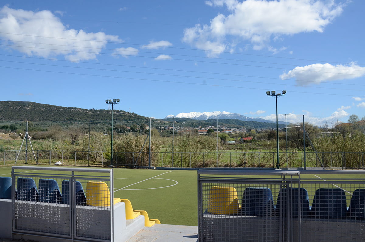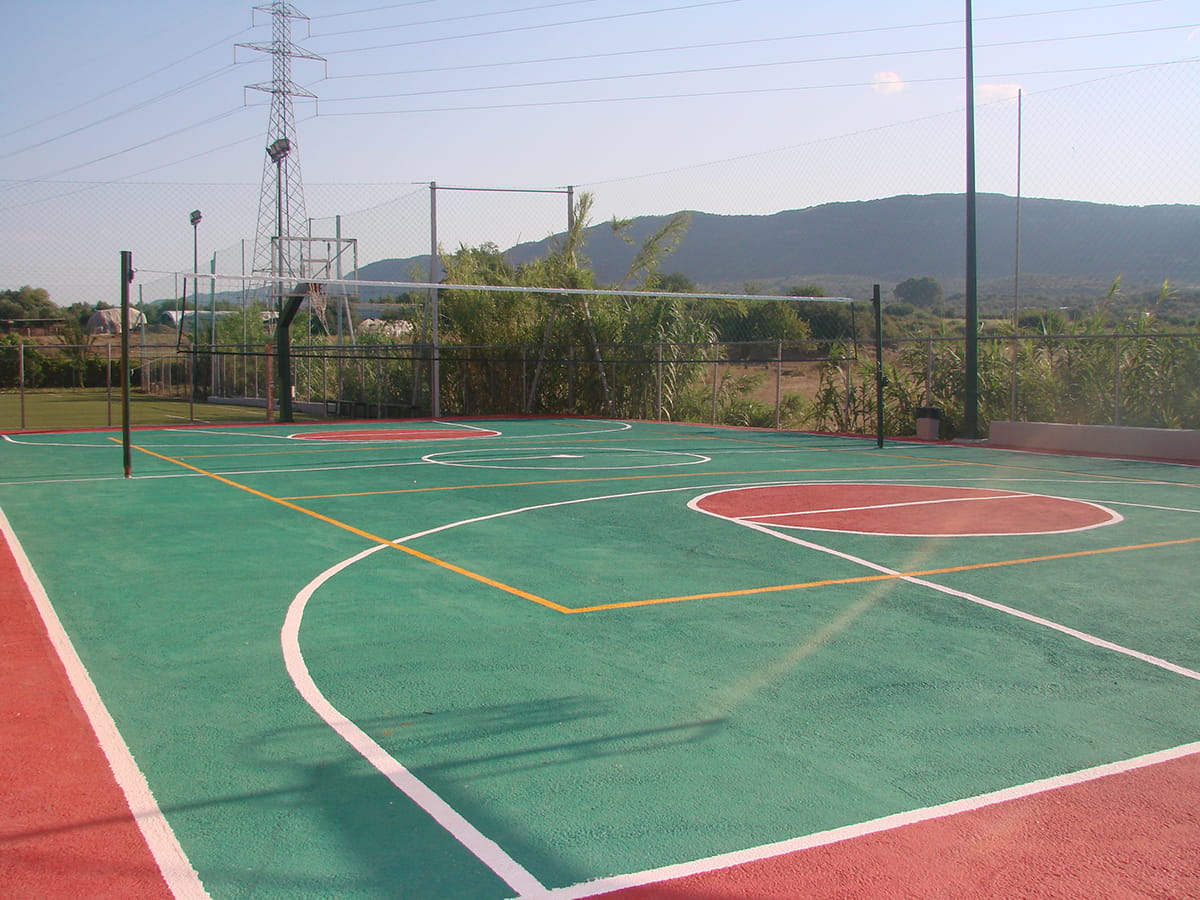 — Αθλητικές εγκαταστάσεις: γήπεδα ποδοσφαίρου, βόλεϊ & μπάσκετ
