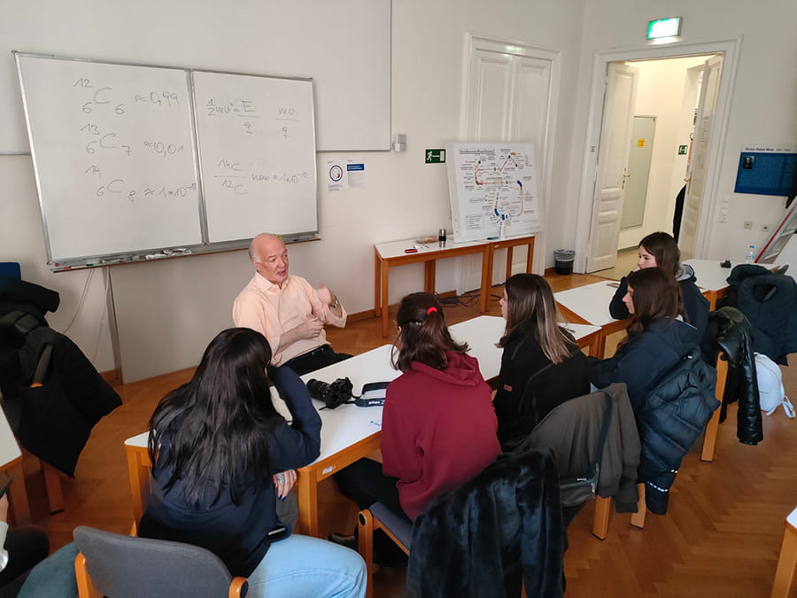 Ευχαριστούμε πολύ τον Κοσμήτορα της Σχολής Φυσικών Επιστημών του Πανεπιστημίου της Βιέννης, Prof. Dr. Robin Golser, τον καθηγητή Prof. Dr. Χρήστο Λύκο και όλους τους καθηγητές και καθηγήτριες του Πανεπιστημίου, που υποδέχτηκαν τόσο ένθερμα τα παιδιά μας, σε μία άψογα προετοιμασμένη ημέρα, η οποία περιελάμβανε εργαστήρια και διαλέξεις.