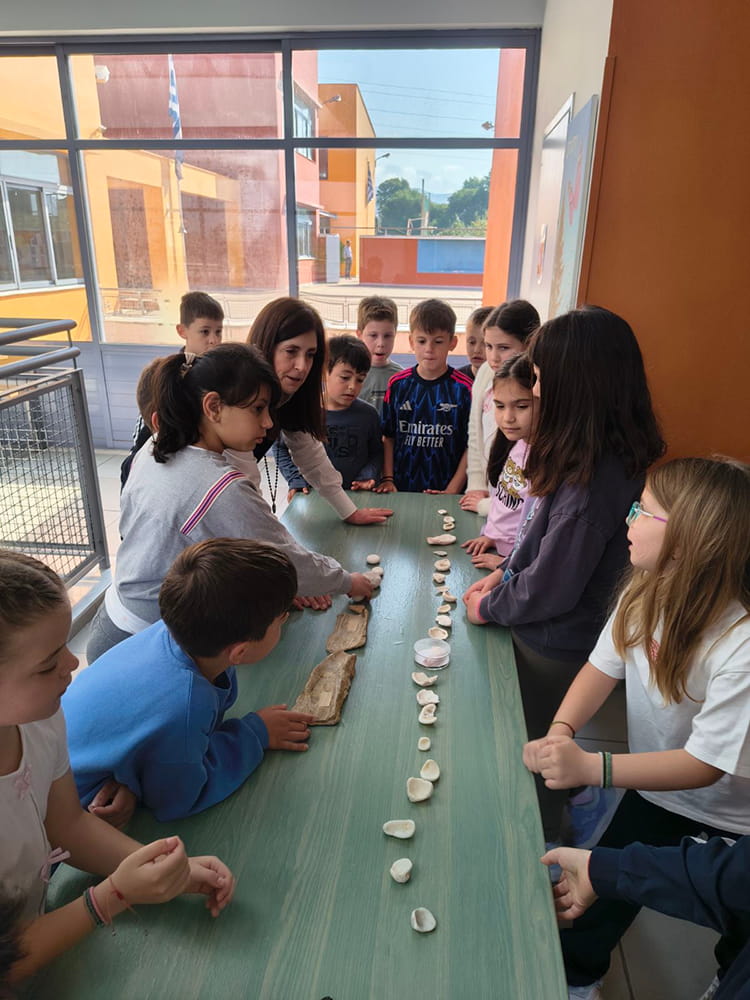 Μαθητές και μαθήτριες περιεργάστηκαν μοναδικά απολιθώματα κοχυλιών από τη συλλογή των Εκπαιδευτηρίων, καθώς και από την προσωπική συλλογή της κας Αγγελικής Μπαλαούρα, ανακαλύπτοντας από κοντά «ίχνη» ζωής εκατομμυρίων ετών.