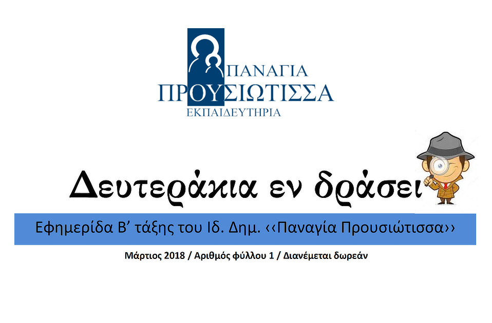 H έκδοση μιας μαθητικής εφημερίδας είναι ένα <<βήμα>> ή διαφορετικά ένας μικρός βηματισμός για την εκφορά του πρώτου δημόσιου λόγου. Έτσι, οι μαθητές της Β’ Δημοτικού δημιούργησαν τη δική τους εφημερίδα, η οποία εκδόθηκε και όλο χαρά μοιράστηκε από τους ίδιους, στο σχολείο μας.