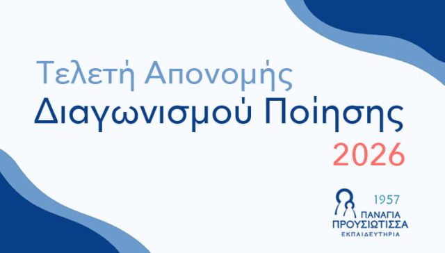 Τα Εκπαιδευτήρια Παναγία Προυσιώτισσα, στο πλαίσιο των πολιτιστικών τους εκδηλώσεων, διοργανώνουν ετήσιο μαθητικό διαγωνισμό ποίησης, που απευθύνεται στους μαθητές και τις μαθήτριες όλων των δημόσιων και ιδιωτικών σχολείων της Ελλάδας και της ομογένειας Σκοπός του διαγωνισμού είναι να ενεργοποιήσει το ενδιαφέρον των νέων για τον ποιητικό, έμμετρο λόγο, τη δημιουργική γραφή, την ενασχόληση με τη συγγραφή λογοτεχνικού, δοκιμιακού κειμένου, αλλά και ευρύτερα να ενθαρρύνει τη γνωριμία των παιδιών με τον κόσμο των μουσών, ως αντίδοτο στη μονομερή επαφή τους με τα τεχνολογικά προϊόντα της εποχής μας. Μέσω του ποιητικού διαγωνισμού, δίνεται η ευκαιρία στους νεαρούς ποιητές να εκφράσουν τον εσωτερικό ψυχισμό τους, αλλά και να μοιραστούν με τον κόσμο των μεγάλων, τα συναισθήματά τους, τις σκέψεις, τους προβληματισμούς τους, τις εφηβικές τους ανησυχίες, τα όνειρά τους, την αγάπη τους για την ομορφιά της ζωής. Άλλωστε, όπως είπε και ο μεγάλος μας ποιητής Γ. Σεφέρης, η ποίηση έχει τις ρίζες της στην ανθρώπινη ανάσα. Οι βραβευθέντες και διακριθέντες μαθητές του 13ου Πανελλήνιου Μαθητικού Διαγωνισμού Ποίησης «Ελεύθεροι Πολιορκημένοι» προσκαλούνται στην Ολοκληρώθηκε η αξιολόγηση των ποιημάτων του 13ου Διαγωνισμού Ποίησης των Εκπαιδευτηρίων “Παναγία Προυσιώτισσα”. Παρακαλούμε δείτε «Ελεύθεροι Πολιορκημένοι» | Σχολικό έτος 2025–2026 Τα Ιδιωτικά Εκπαιδευτήρια «Παναγία Προυσιώτισσα» στο Αγρίνιο προκηρύσσουν για Ολοκληρώθηκε η αξιολόγηση των ποιημάτων του 12ου Διαγωνισμού Ποίησης των Εκπαιδευτηρίων “Παναγία Προυσιώτισσα”. Παρακαλούμε δείτε Ολοκληρώθηκε η αξιολόγηση των ποιημάτων του 11ου Διαγωνισμού Ποίησης των Εκπαιδευτηρίων “Παναγία Προυσιώτισσα”. H φετινή Θέλουμε να ευχαριστήσουμε θερμά όλους όσοι συμμετείχαν στον Πανελλήνιο Διαγωνισμό ποίησης των Εκπαιδευτηρίων μας και Αποτελέσματα 9ου Μαθητικού Διαγωνισμού Ποίησης 2021-2022. Τα Εκπαιδευτήρια «Παναγία Προυσιώτισσα» διεξήγαγαν φέτος τον 8ο Μαθητικό Διαγωνισμό Ποίησης αφιερωμένο στον Ν. Καζαντζάκη 5ος Μαθητικός Διαγωνισμός Ποίησης (2016 – 2017) Γιώργος Σεφέρης Τα Εκπαιδευτήρια «Παναγία Προυσιώτισσα» ολοκλήρωσαν τον ΕΤΗΣΙΟΣ